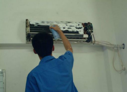 | 双桥空调维修师傅给双桥用户上门维修清洗空调。 |